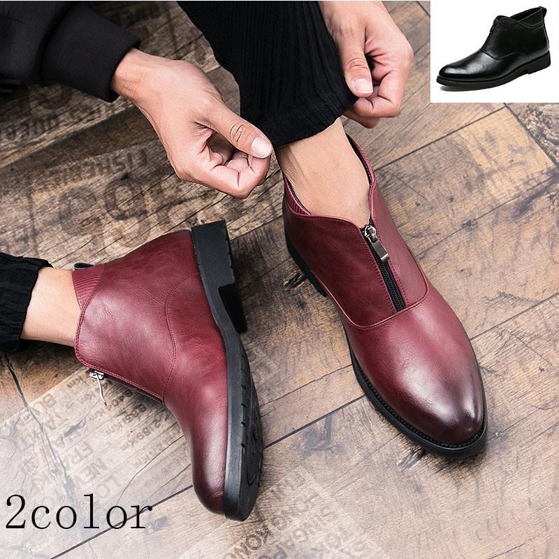 牛床革ローカットブーツ カジュアルブーツメンズ紳士靴ヒール厚 セレクトショップ 閃き ポンパレモール
